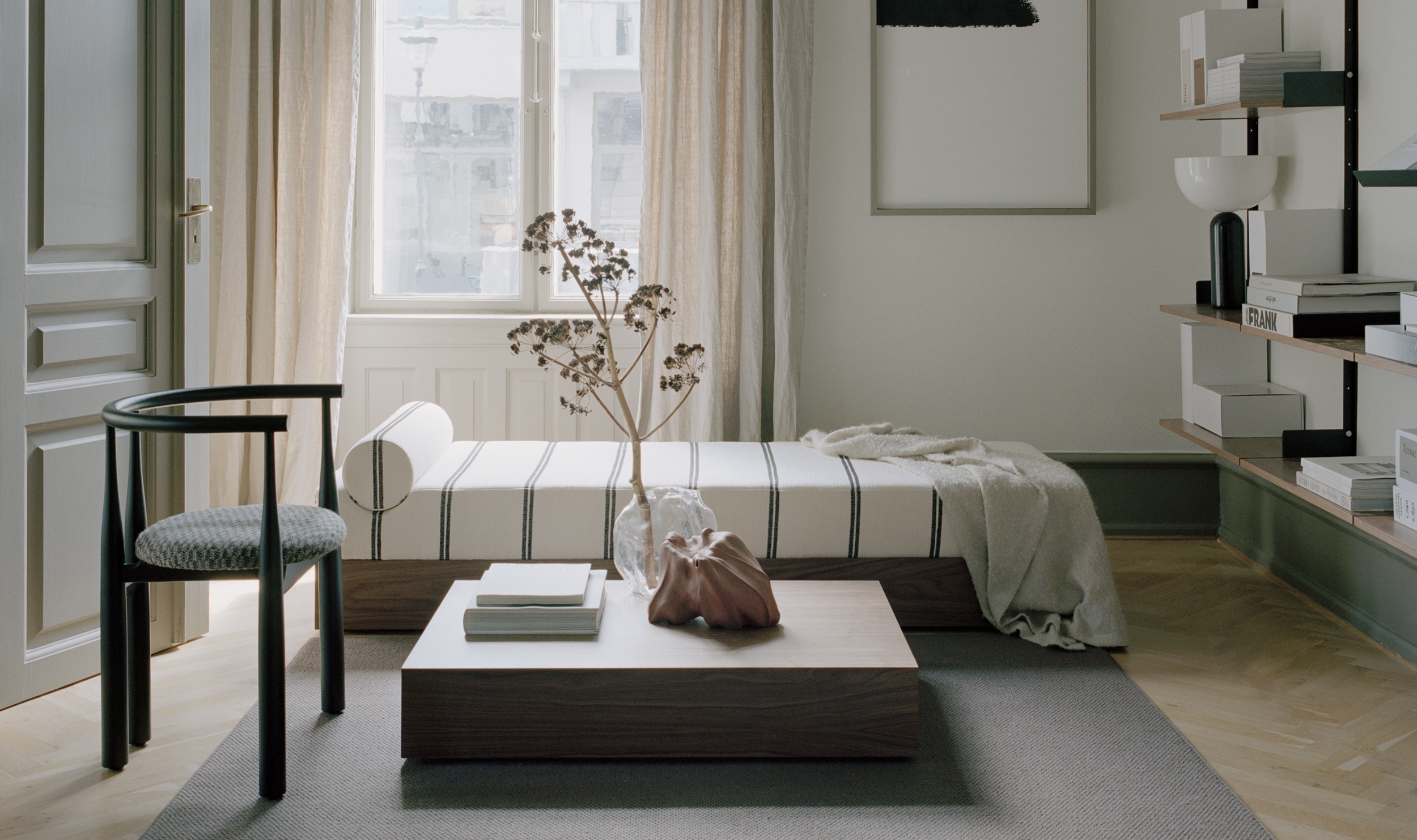 Inspired by tailored menswear and classic interiors, the exhibition proposes a sartorial elegance celebrating craftsmanship and timeless pieces. An interior that evolves around the oppositions that define New Works and continue to propel it forward. Light and dark. Classic and contemporary. Raw and refined.