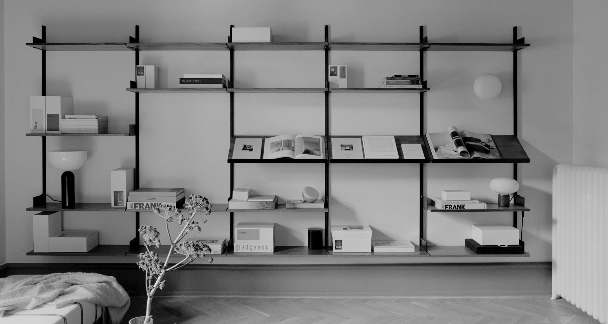 Build a shelving system shaped by you. With our configurator, you can tailor every element to your space and sensibility. Add modules, adjust proportions, and explore variations in material and detail. The tool also allows you to visualise how the piece might look in your home, and to measure the exact configuration you have created. Once satisfied, add your design to the cart or contact us at advisor@newworks.dk for further guidance.